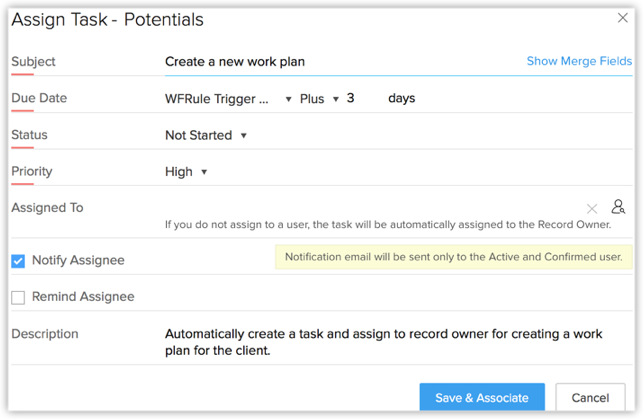 - 即时操作: 通过为工作流规则创建/关联所需任务而关联即时操作。