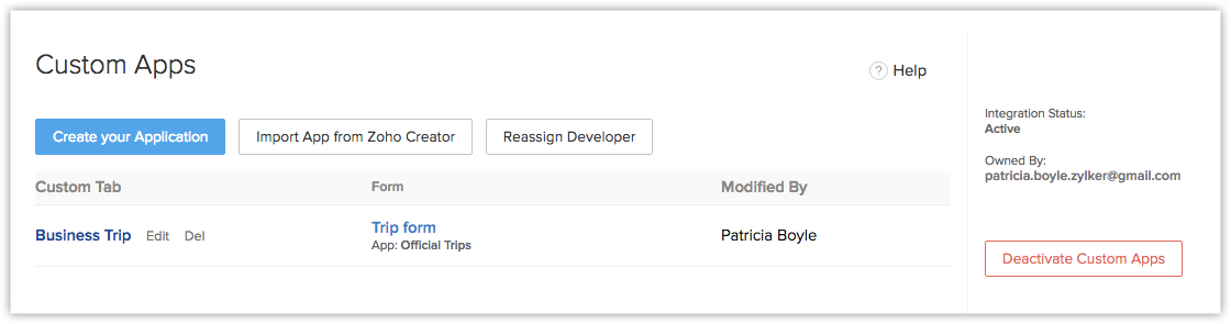 作为 Zoho CRM 管理员,您可以在您的机构中用户不能使用 Zoho CRM 中的 Zoho Creator 创建自定义应用程序之后取消激活这一功能。
