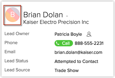 您可以在您的 Zoho CRM 账户中添加您的联系人和线索照片。 您可以在任何有需要的时候删除照片。