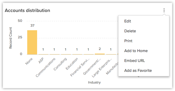 您还可以通过点击组件中的更多图标,来编辑、删除、打印、添加到主屏幕、嵌入 URL 或添加图表至收藏夹。