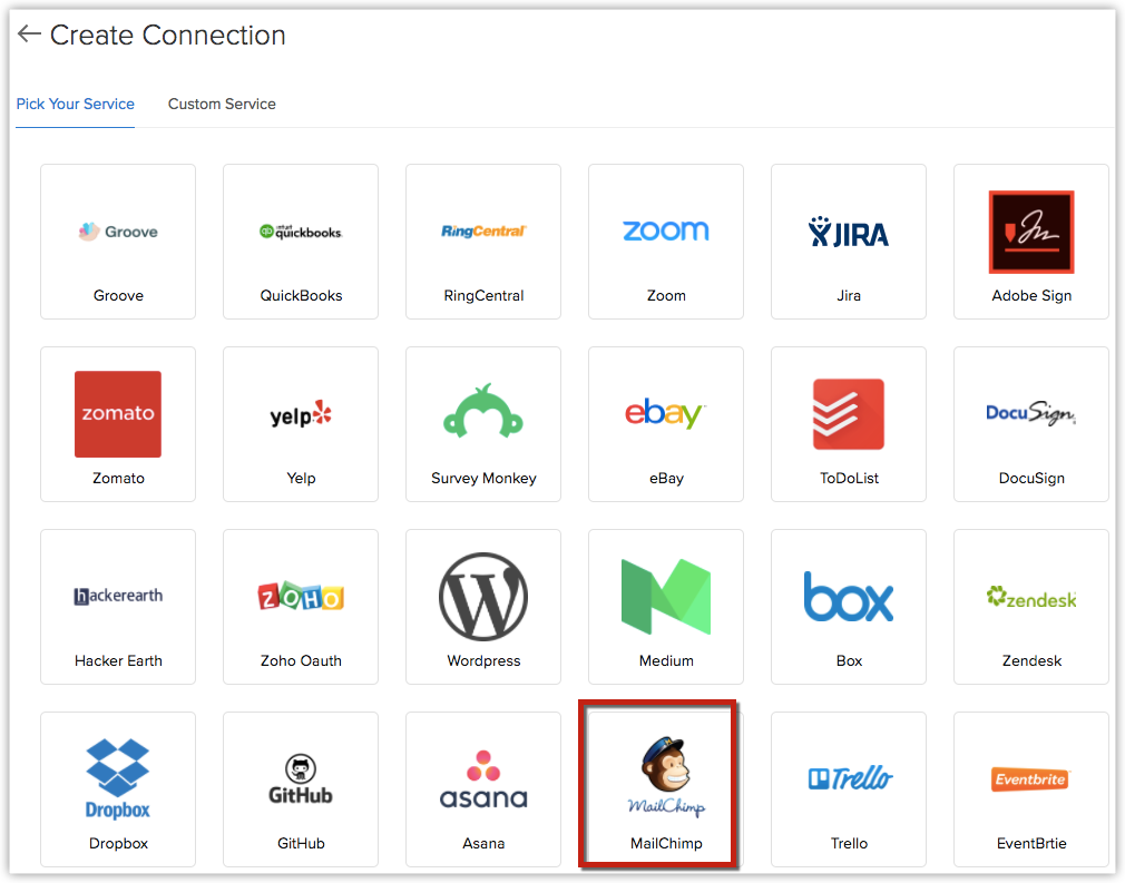 - 可以在“选择服务”页面中找到“MailChimp”连接器。