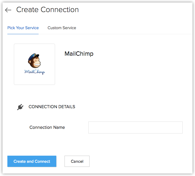 - 提供要连接的服务的名称(例如:MailChimp)。