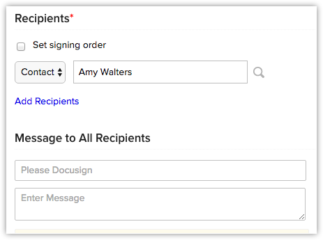 选择此项后,您将可选择指定各个收件人对应的顺序。 - 选择您想要向其发送文件以获取签名的收件人。