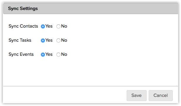 如需同步来自 Zoho CRM 的联系人、任务和活动