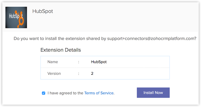 您可以转到Zoho 市场并安装 HubSpot连接器或登录您的 Zoho CRM 账户并安装。
