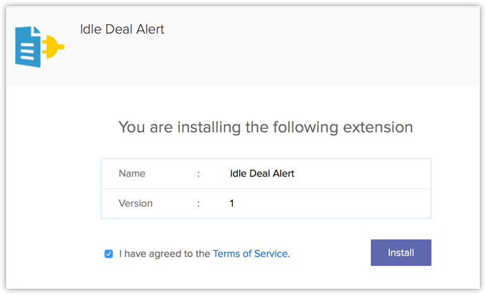 您可以转到 Zoho 市场安装闲置交易提醒扩展或登录您的 Zoho CRM 账户并安装。