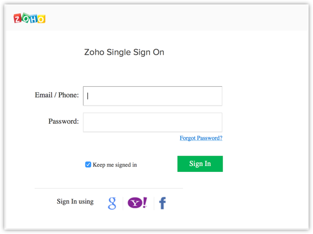 例如,如果您的 IdP 登录 URL 是https://platform.zoho.com/auth/samllogin/2247998000000137035,复制此链接并粘贴到浏览器窗口中,并追加?idpInitiated=true。 那么最终的登录 URL 就是https://platform.zoho.com/auth/samllogin/2247998000000137035?idpInitiated=true。 - 这会让您前往Zoho 单点登录页面。