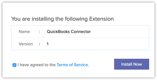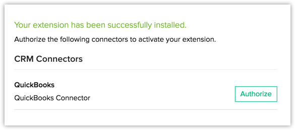 - 在 Zoho CRM 中刷新QuickBooks 扩展详细信息页面,完成授权流程。