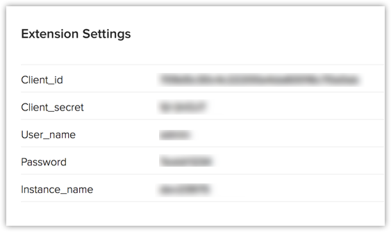 复制这些详细信息并将它们粘贴在扩展设置部分下方(扩展详细信息页面)。 用户名和密码表示您的实例而非您的开发者账户的用户名和密码。 (ServiceNow 现在有针对开发者账户和实例的单独用户名和密码。)