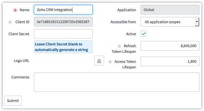 您可以将来自 Zoho CRM 案例模块的记录与 ServiceNow 中的活动模块集成。 为了做到这一点,您将必须提供‘客户 ID’、‘客户密钥’和 ServiceNow 实例 ID 及密码。