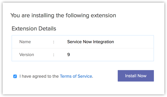 您可以转到Zoho 市场并安装 ServiceNow 集成或登录您的 Zoho CRM 账户并安装。