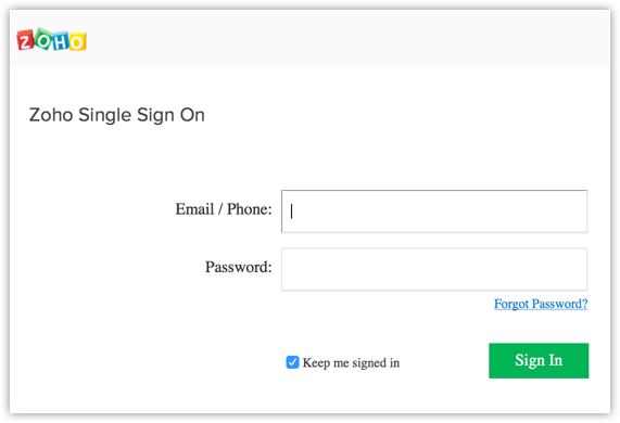- 复制开始 URL 并在新窗口中打开。 这会让您重定向到Zoho 单点登录页面。