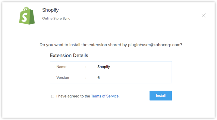 您可以转到Zoho 市场并安装 Shopify 扩展或登录您的 Zoho CRM 账户并安装。