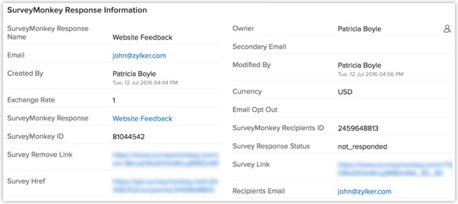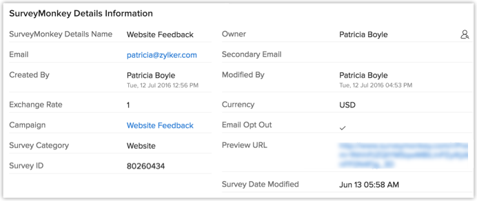 您在 SurveyMonkey 中创建的调查可以发送给您的 Zoho CRM 账户中列出的联系人。