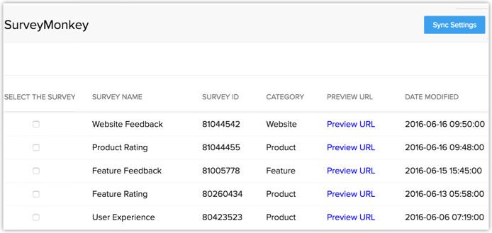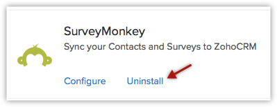 SurveyMonkey 是您可以创建简单到复杂的调查并分析宝贵的回复的调查平台。 此扩展帮您引入您的 Zoho CRM 账户中的调查和调查回复,并将其与 CRM 联系人关联。 调查将作为宣传,联系人可单向从 SurveyMonkey 同步到 Zoho CRM,或实施双向同步。 此外,您可以从 Zoho CRM 发送调查给您的联系人。