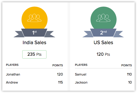 团体游戏的游戏页面看上去略有不同。 游戏的主页显示参加游戏的团体列表以及各个团体的总分。 团体中单个用户的积分将在团体积分下方列出。