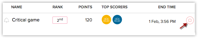 如果用户因为任何原因希望结束进行中的游戏,可随时通过点击游戏名称旁边出现的停止图标 [