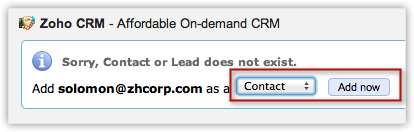 您可以从 Gmail 消息添加潜在客户到联系人中,它会在您的 CRM 账户中自动更新。 请注意,潜在客户一旦添加,仅可在 Zoho CRM 中更新或删除。