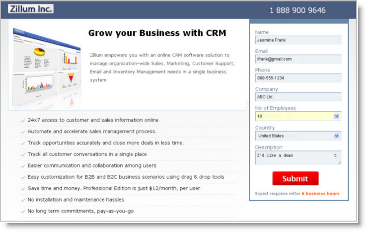 - 提交表单详细信息。 详细信息将在您的 Zoho CRM 账户中可用。