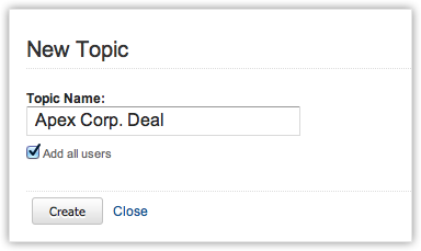 利用群聊选项,您可以在任何需要的时候与一群用户或团队就特定话题展开聊天,查看话题的聊天历史并为话题添加或删除参与者。