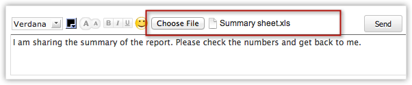 此选项帮助您在与用户聊天的时候共享文档。 您可以通过 Zoho CRM 聊天共享任何数量的文档,但每个文档的大小不得超过 2MB。