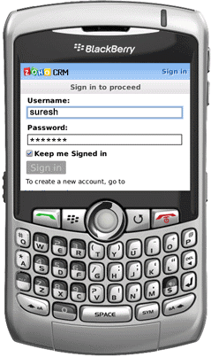 - 从您的BlackBerry 原生浏览器访问http://mobile.zoho.com/crm/blackberry。