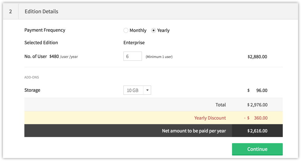 - 在 Zoho Store 页面中,首先根据您的业务需求选择版本。