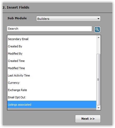 例如,假设您在线索模块中创建了名为相关构建器 的查找字段,您在此连接了名为构建器的自定义模块。 您为线索创建邮件模板时,您也会在合并字段列表中看到来自构建器模块的字段。 这些也被称为次要模块或相关模块。