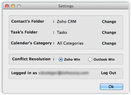 - Zoho 获胜 - 来自 Zoho CRM 的值覆盖 Microsoft Outlook 的值。