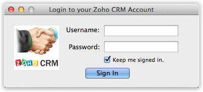 - 在登录 对话框中,输入您的 Zoho 账户的 邮件/用户名 和密码。