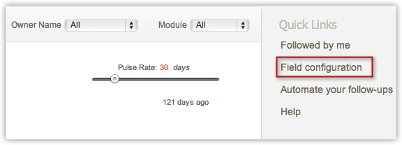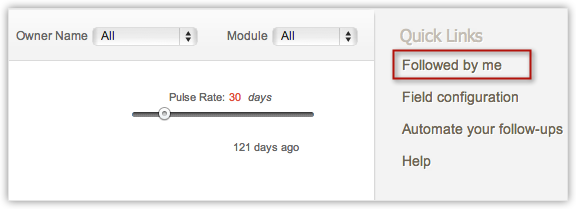 例如: 您要插卡5天内没有活动记录或更新的记录,您需要将Pulse时间范围设置为5天,然后所有5天内未更新的关注记录将显示在Pulse页面中。