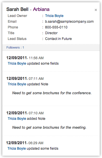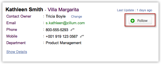 在Zoho CRM中您可以使用Pulse功能关注或取消关注线索、客户、联系人及商机信息,您可以关注所有这些记录的更新情况,已更新记录及未更新记录可以显示所有您关注的记录的更新情况。