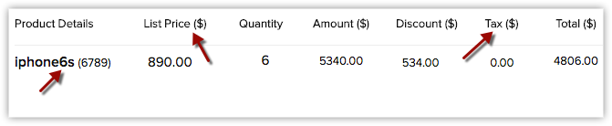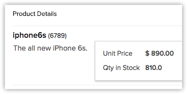 如果您希望重新排列产品行顺序,只需拖放行项目。 如需查看 产品数量和单价,将您的鼠标指向 产品名称/产品代码。 如需查看折扣后总价,将您的鼠标指向 折扣。