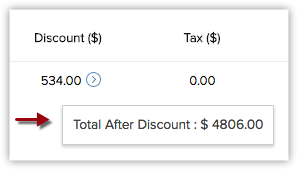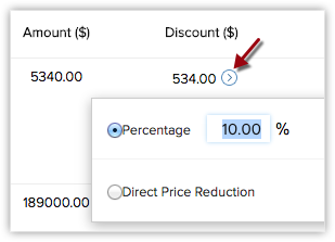 - 如需编辑行项目的详细信息,点击您的鼠标指向税费或折扣等值时出现的编辑图标。 对值的编辑会自动更改任何相关的值。