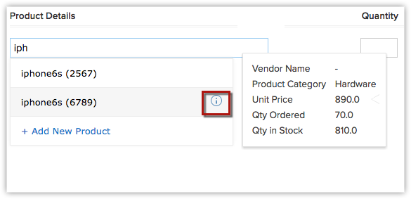 如需关于所选产品的库存数量之更多信息,请将您的鼠标指向数量文本框旁边的信息图标。