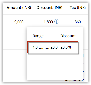 如需查看相关价格册的折扣和范围详细信息,将您的鼠标指向折扣值并点击出现的信息图标。