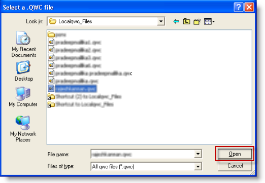 - 在选择.QWC文件弹出窗口中浏览.qwc文件并点击打开