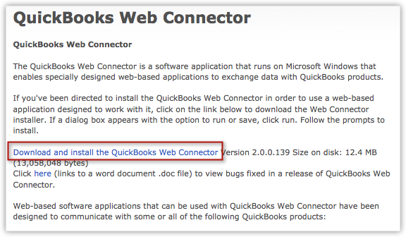 如果您没有QuickBooks Web Connector,您可以通过链接: http://marketplace.intuit.com/webconnector/