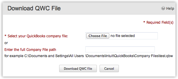 这里,输入的是QuickBooks公司文件(.qbw文件),下载之后输出的是QuickBooks Web Connector文件(.qwc文件)