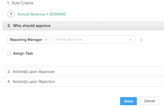 在商业活动中,有时任务需要上级批准才能继续。例如,销售代表提供产品折扣或决定启动某个市场活动,需要销售经理批准之后才能执行。报告层级允许您将上报经理分配为审批者。可选择该用户的上报经理来批准活动。
