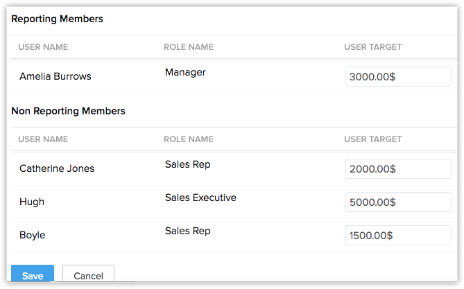 Zoho CRM 允许您点击一下就可以查看用户的报告明细。此用户信息将显示用户的上报经理及下属(如果有的话)。如果层级首选项已更改或被禁用,此数据将不可见。而且,不会显示非报告用户的数据。