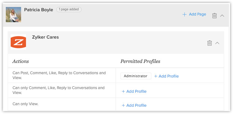 - 操作 - 您可以定义每个角色下用户被允许执行的一组操作。例如,您可能想要某些用户发布更新和评论,但另一些只查看更新。在此类情况下,您可以在操作部分限制他们在 Facebook 上发布内容。