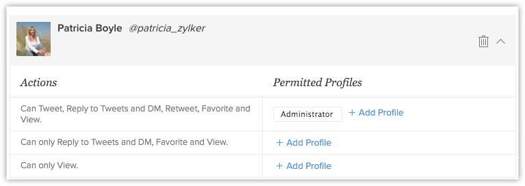 通过将您的 Twitter 帐户与 Zoho CRM 关联,您可以从 CRM 执行以下一组操作。