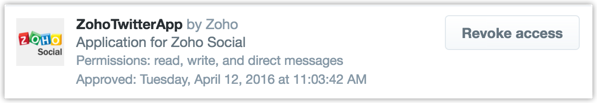 将列出您授权与 Twitter 帐户互动的应用程序。 - 对 Zoho CRM 应用点击撤销访问。