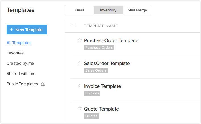 您可以创建库存模板用于发送自定义报价、销售订单、发票和采购订单给客户和您的供应商。 Zoho CRM 中的库存模板可以使用下列方式轻松创建。