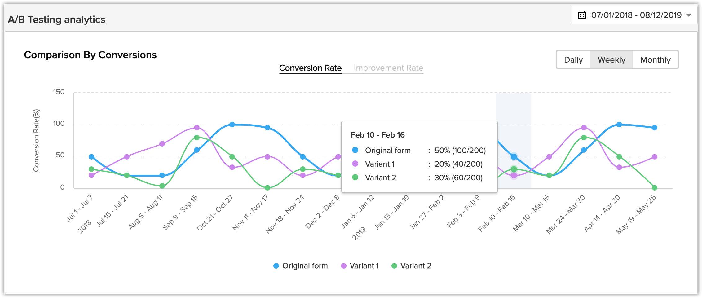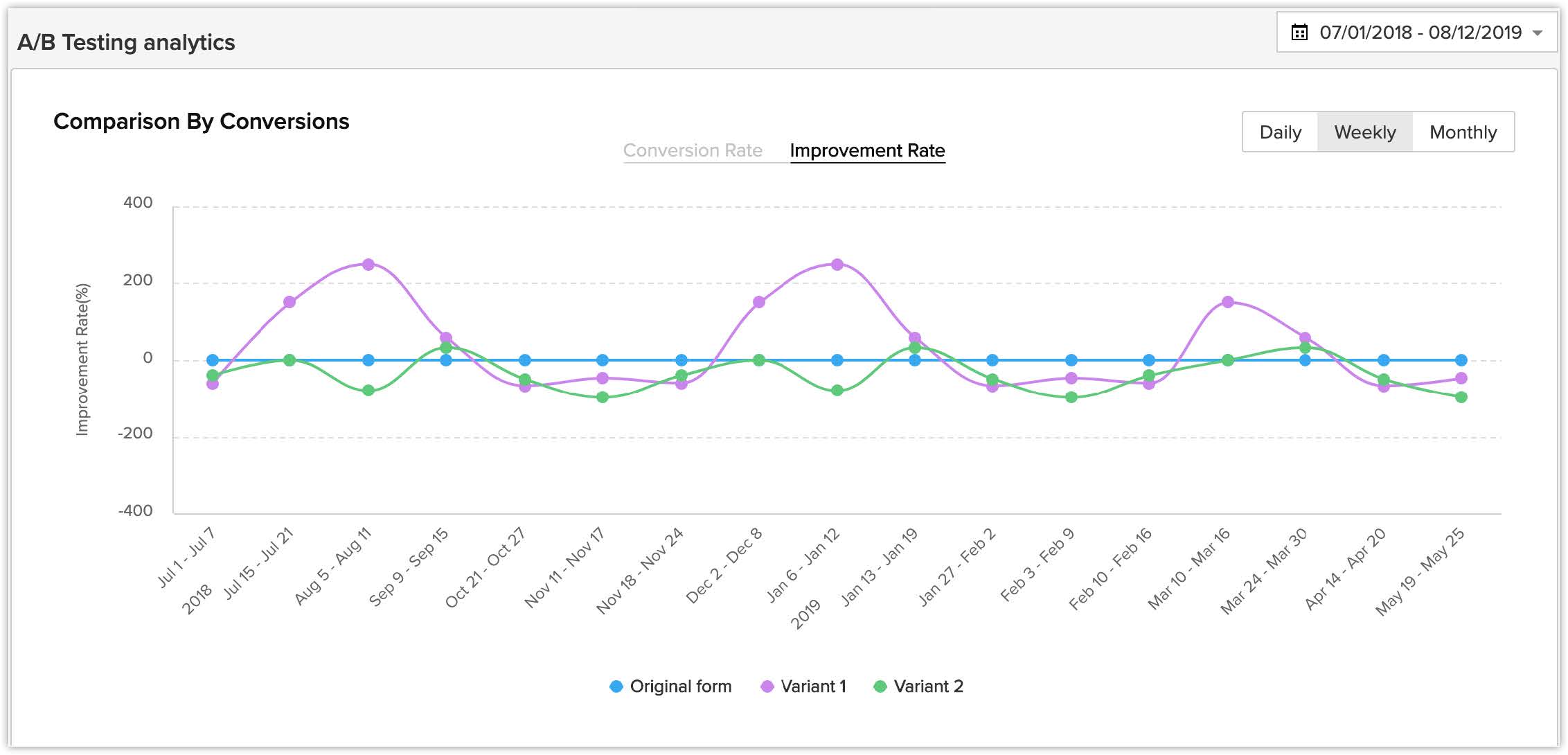 - 改善率:从变体收到的提交数量相对于原始表单的百分比增加。