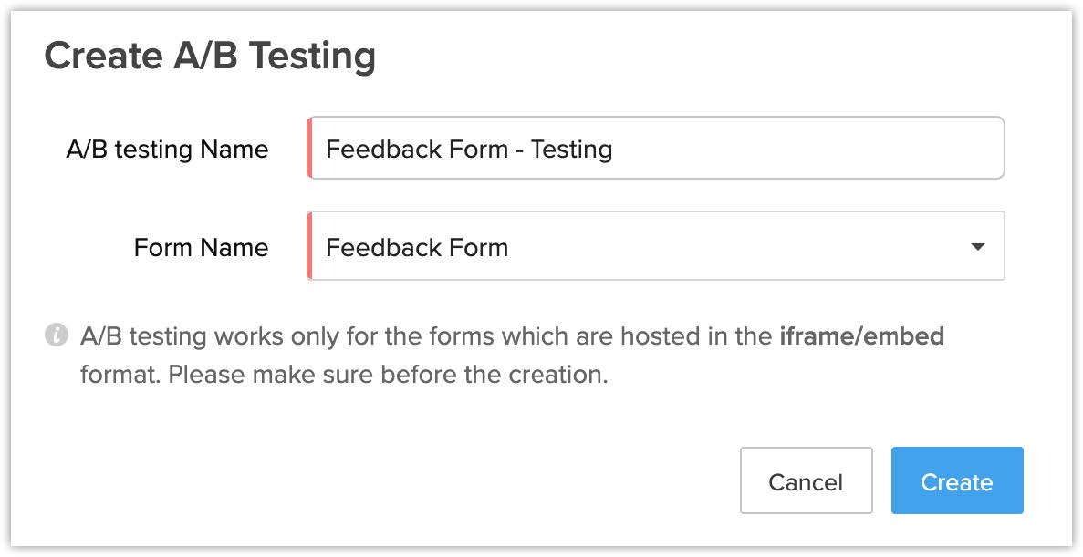 - A/B测试仅适用于以嵌入 / iFrame格式托管的Web表单。