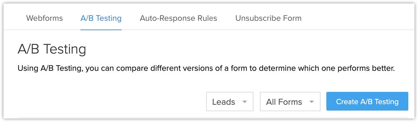 例如,您的落地页上有一个线索生成表单,该表单并没有为您提供预期数量的线索。您可能想调查原因,因为表单是您的网站和访客之间的门户。有许多提高Web表单性能的最佳实践。减少字段数以及更改CTA按钮的颜色和文本等简单的操作可以提高表单提交的速度。但是,您如何才能在CRM的Web表单上进行这些试验,并找出效果最好的试验,而又不会浪费时间和表单流量。A/B测试可以帮助您。