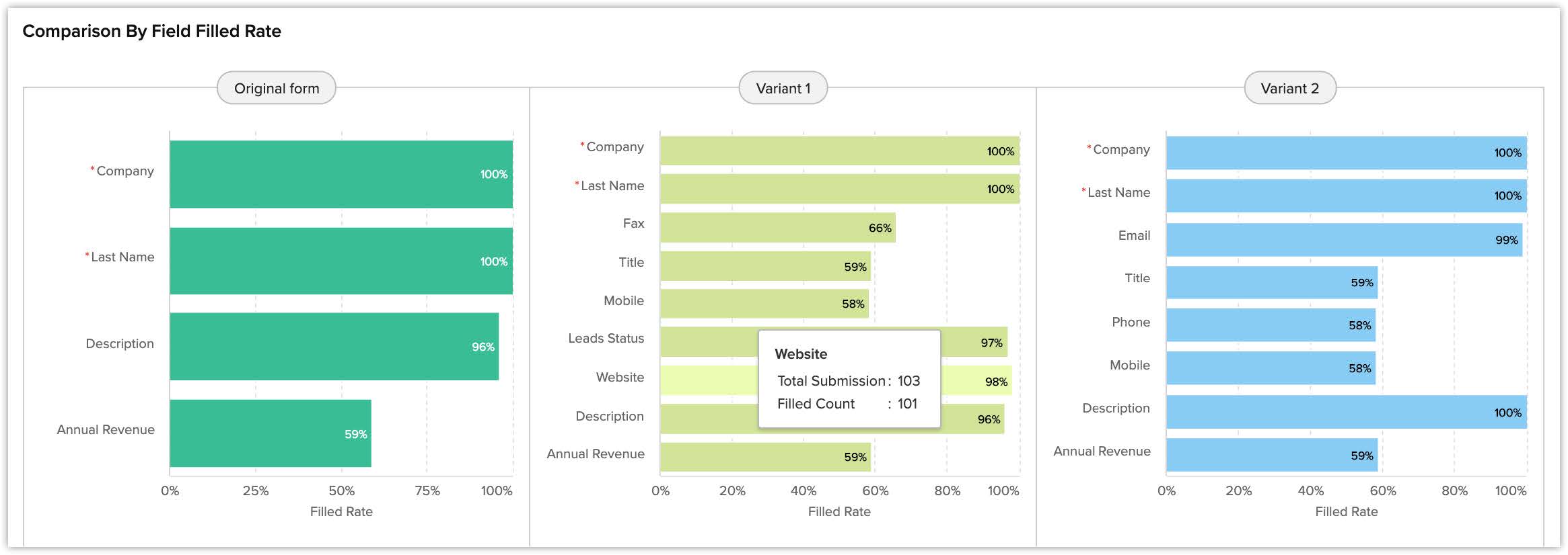 图形化表示原始表单和变体之间的比较。 您可以查看以下内容的比较: