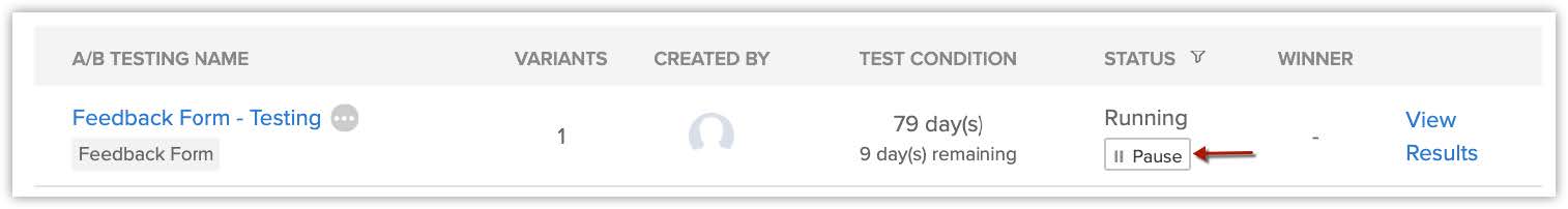 如果您暂停A/B测试,则原始Web表单将提供给所有访客,而变体将不会显示。 恢复后,A/B测试过程将继续运行。